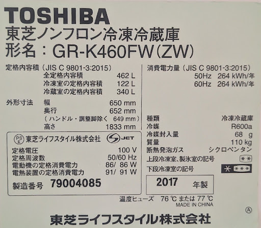 | 大きさ・容量 | 462L |